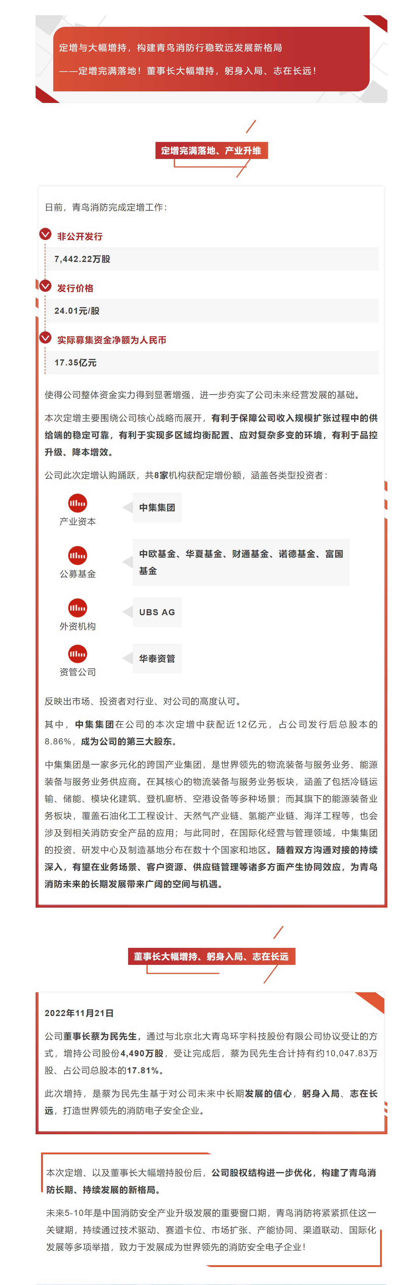 定增與大幅增持,構建青(qīng)鳥消防行穩致遠發展新格局——定增(zēng)完滿落地!董(dǒng)事長大幅增持,躬身入局、誌在長遠!