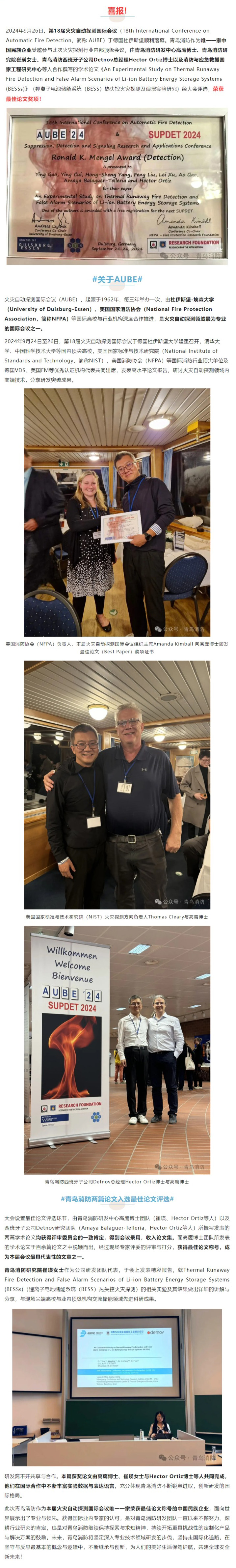 娇BBB搡BBBB揉BBBB資訊 | 喜報!娇BBB搡BBBB揉BBBB(niǎo)消防亮相第18屆火災自動探測國際會議(yì)(AUBE),榮(róng)獲火災探測領域最佳論文(wén)!